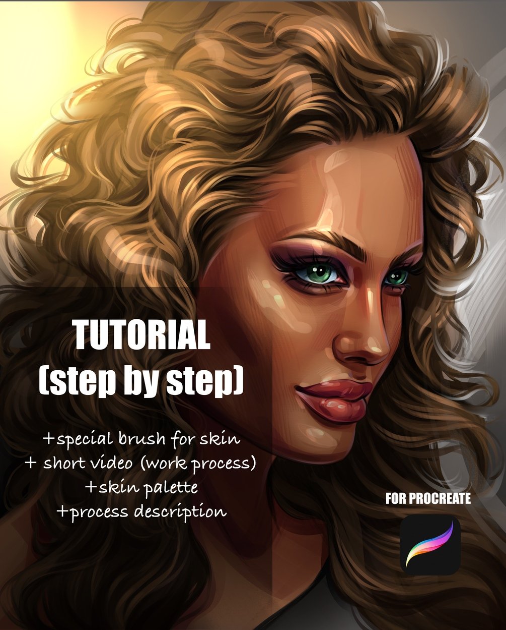 As an addition to the main file with the tutorial (Pages format) you will receive a palette that I used fo skin, hair, lips and eyes. This palette is universal, you can also use it in your other works. Also inside the product you will find a skin brush, I hope you will like it and you will use it as often as I do.